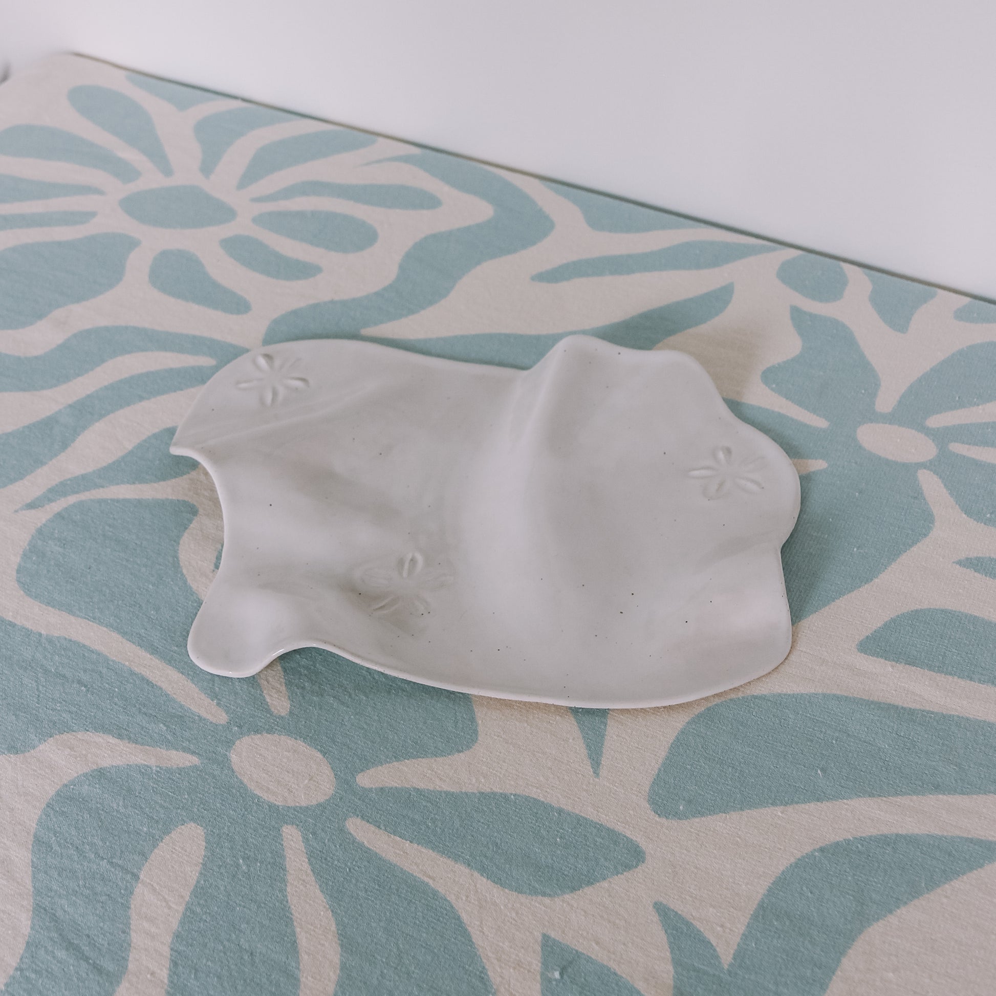 Bring a touch of coastal to your table with this handmade serving platter, featuring delicate cowrie shell flower imprints. Inspired by the sea and shaped with soft, organic curves, it’s perfect for summer gatherings, seaside charcuterie, or simply adding a breezy, beach-house touch to your home.