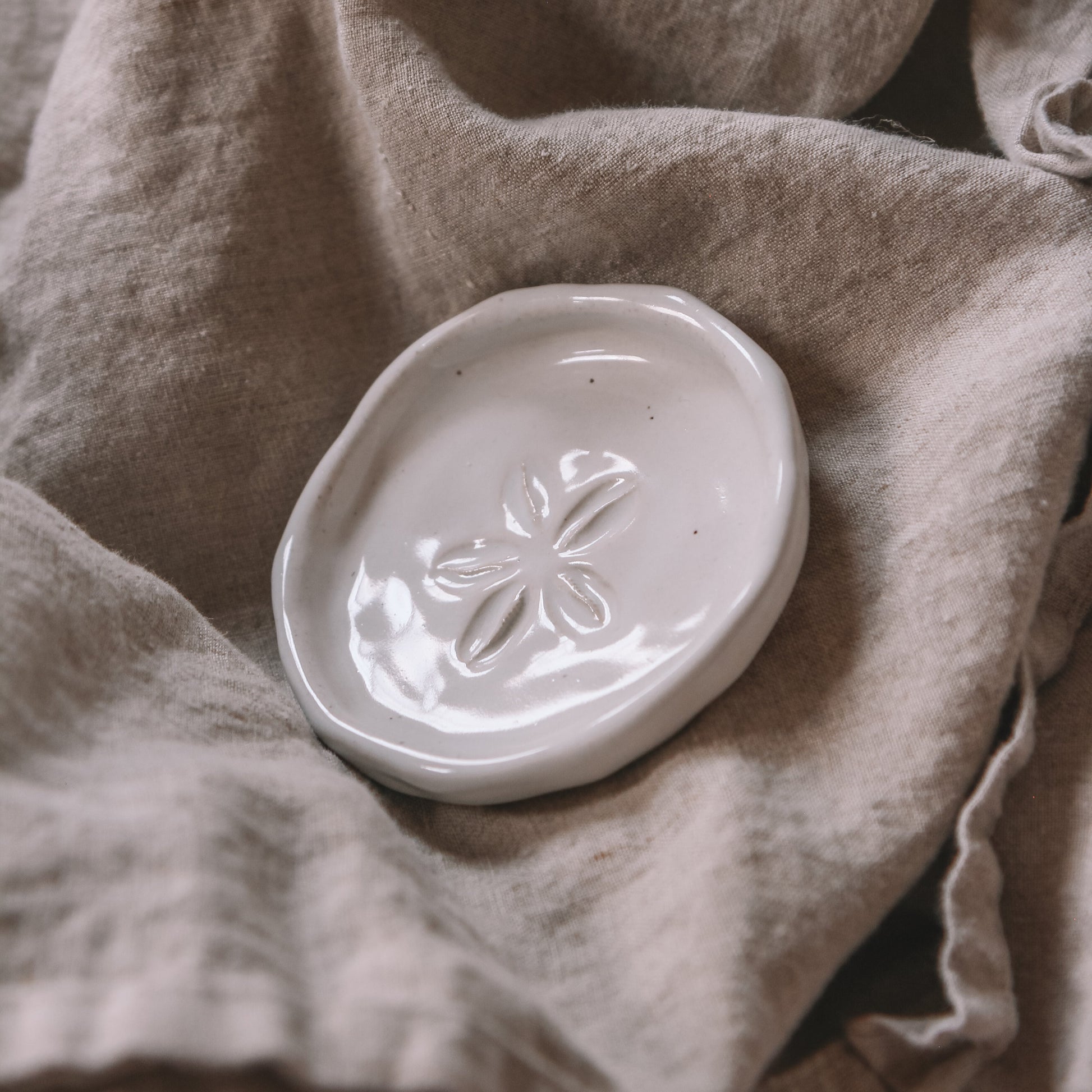 This Cowrie Flower Small Dish features an imprinted cowrie shell flower right in the center! It’s a super cute addition that adds a touch of the ocean to any side table, dresser, or shelf! Plus, it’s just the right size for holding last night’s jewelry!