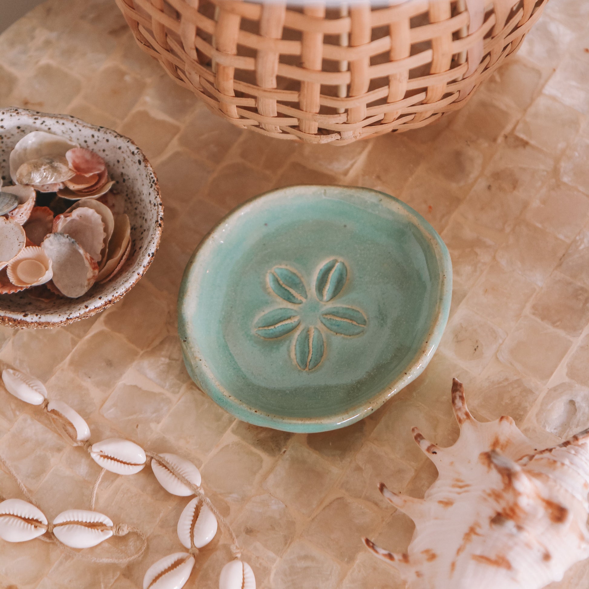 This Cowrie Flower Small Dish features an imprinted cowrie shell flower right in the center! It’s a super cute addition that adds a touch of the ocean to any side table, dresser, or shelf! Plus, it’s just the right size for holding last night’s jewelry!