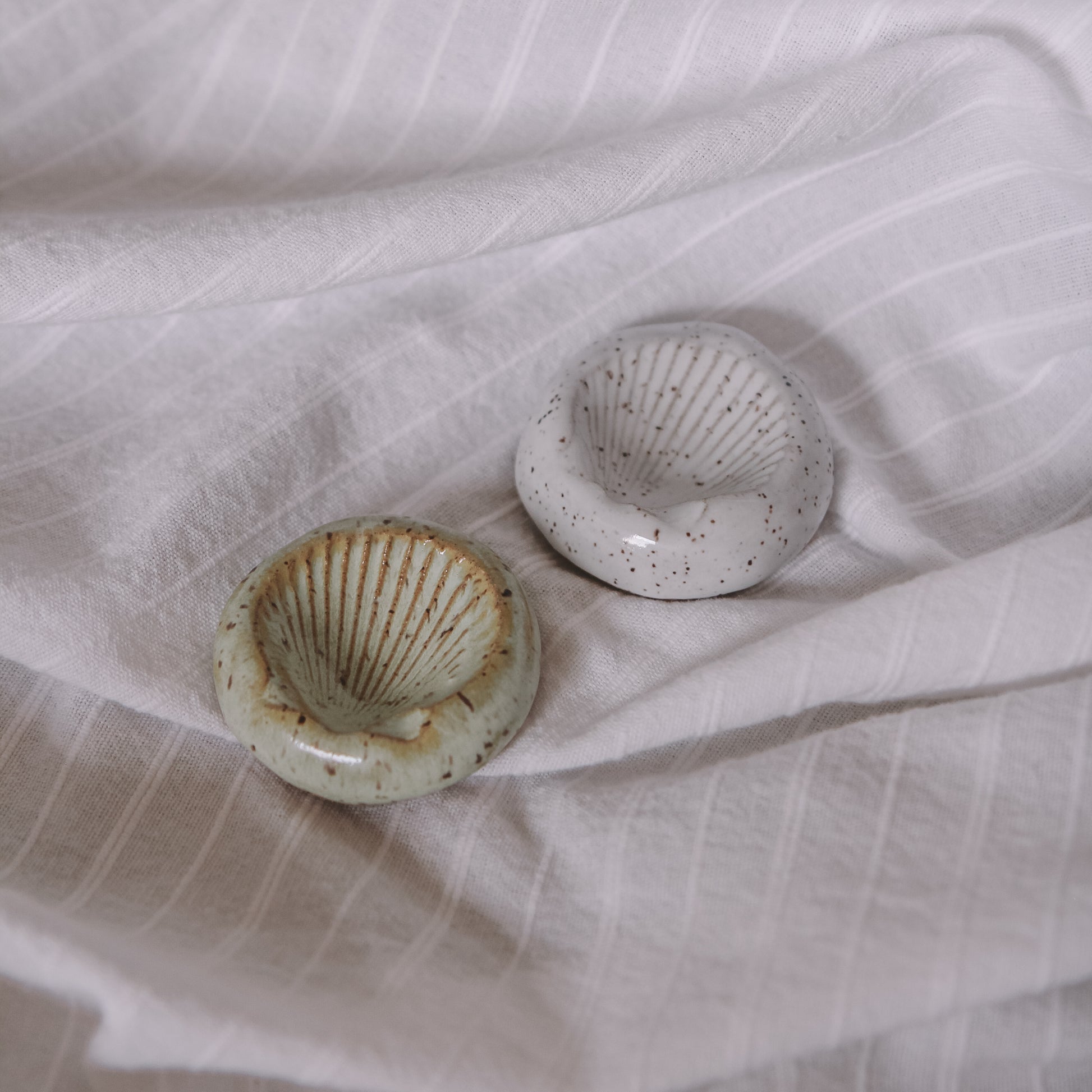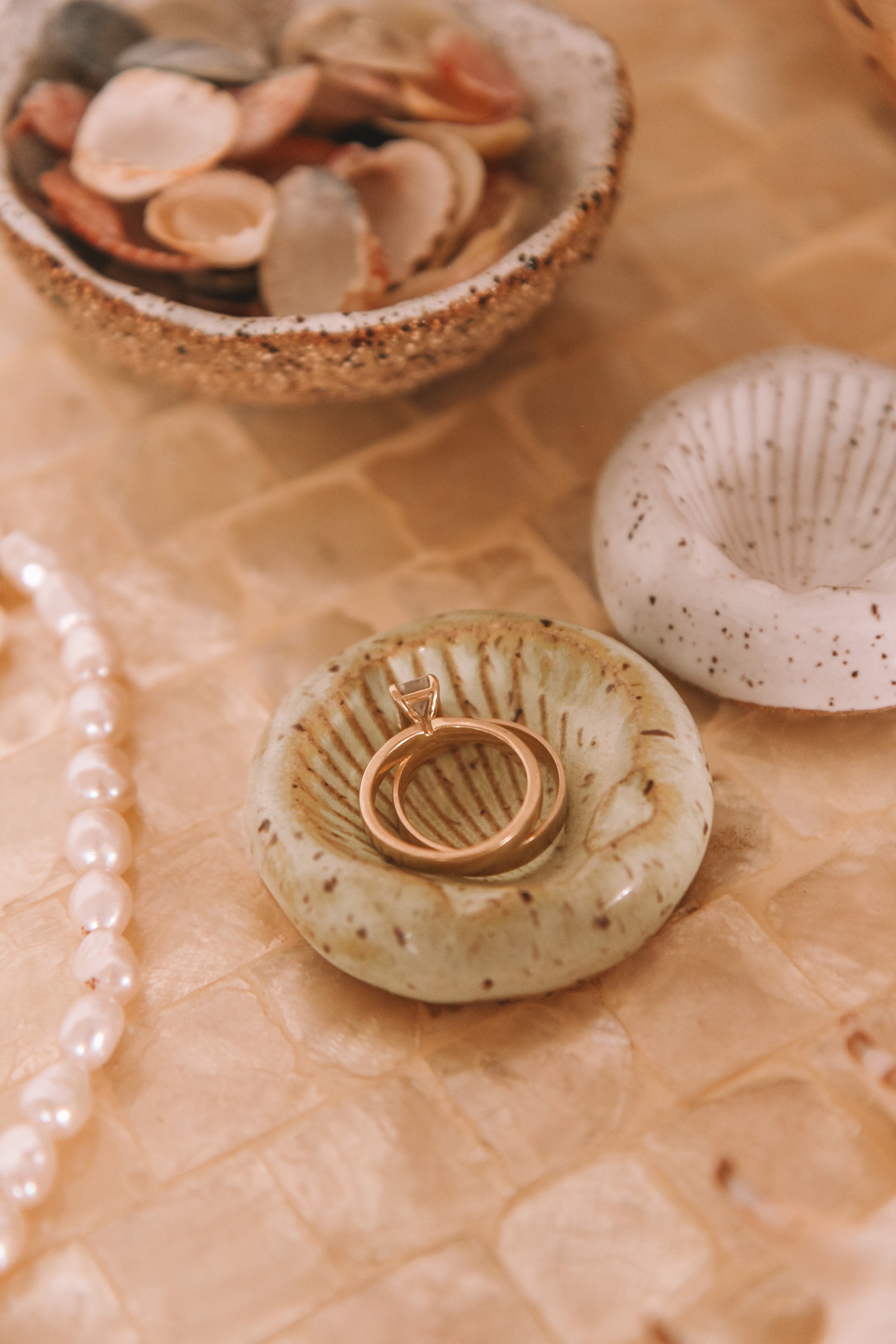 This Mini Scallop Shell Ring Holder has a cute scallop shell imprint. Its small size makes it perfect for holding rings by your bed, kitchen sink, or bathroom! It can also be used as a table weight, utensil rest, or as a little decorative touch!