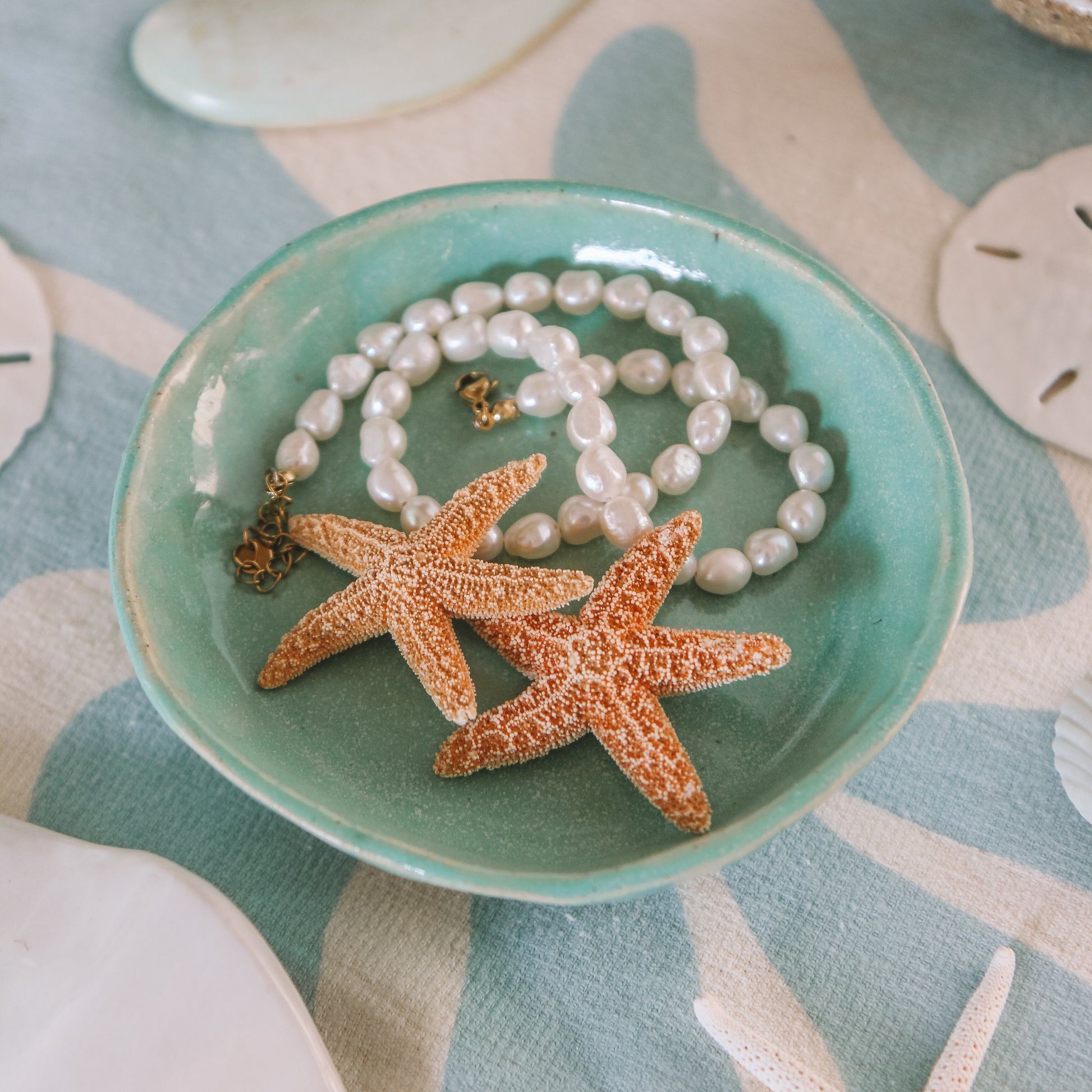 Glazed in dreamy 'wave blue' and perched on three little feet, this petite dish brings coastal charm to any space! Perfect for holding rings, your sea glass collection, or for serving your favorite sweet treats, it’s like a little tide pool for your treasures!